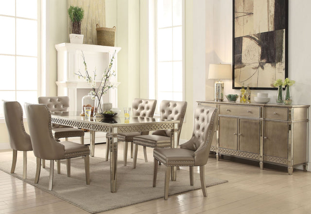 Kacela Champagne Dining Room Set - 3 Piece Set is backordered and will ship as soon as it is back in stock.