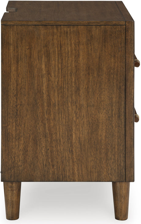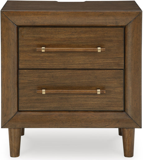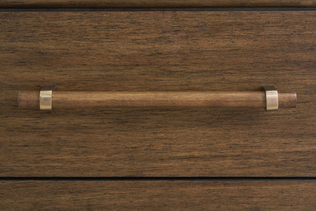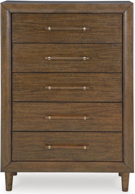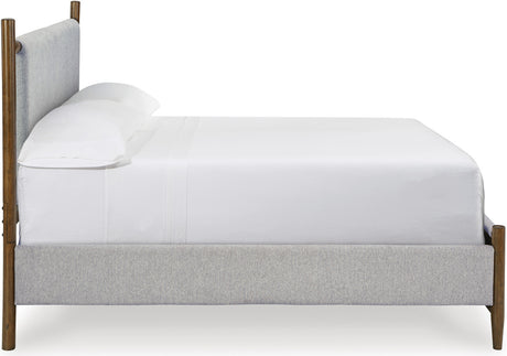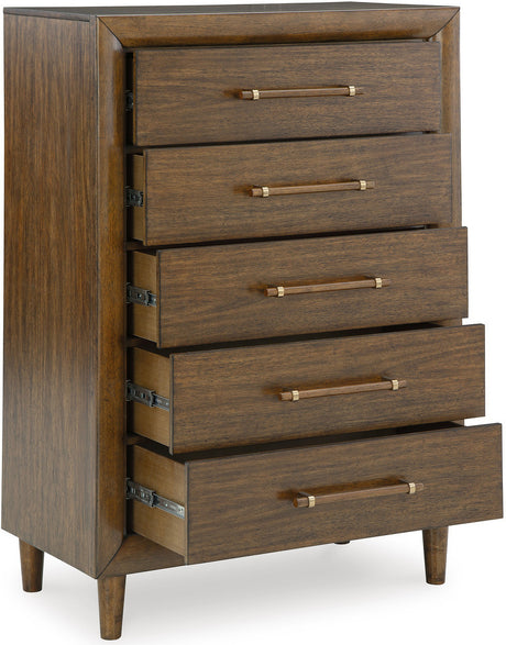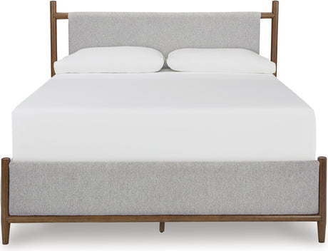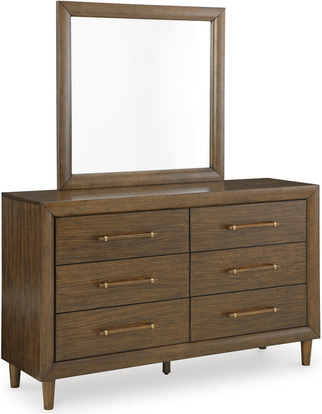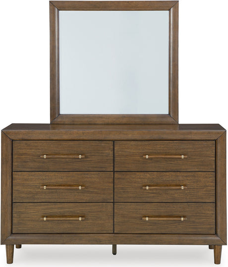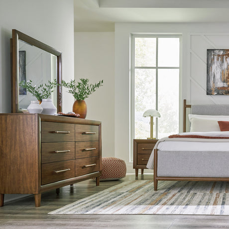 Lyncott Brown California King Upholstered Bed, Dresser And Mirror