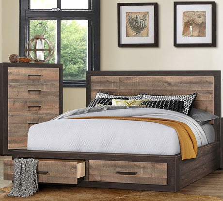 Miter Rustic Mahogany And Dark Ebony Eastern King Platform Bed With Footboard Storage