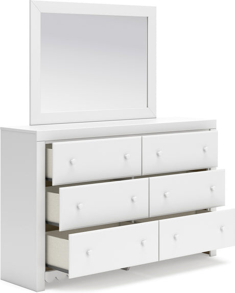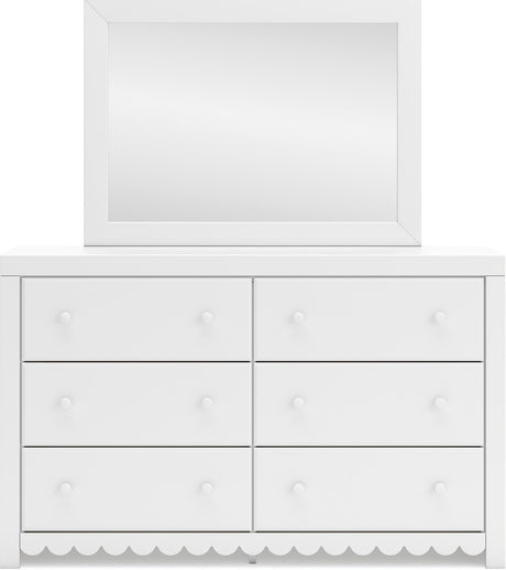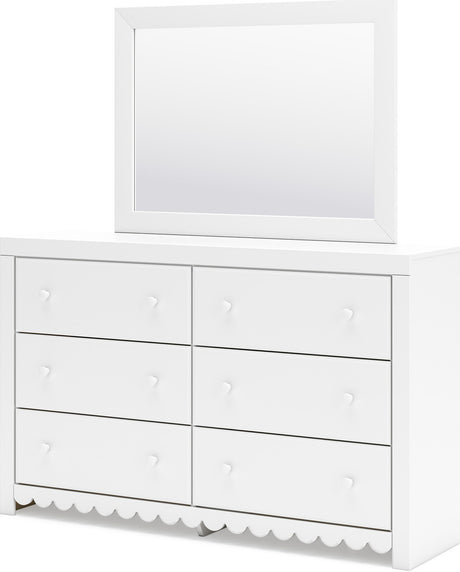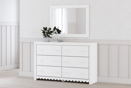 Mollviney White Full Panel Headboard, Dresser And Mirror
