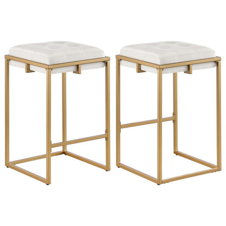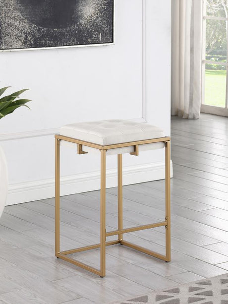 Nadia Square Padded Seat Bar Stool (Set Of 2) Beige And Gold