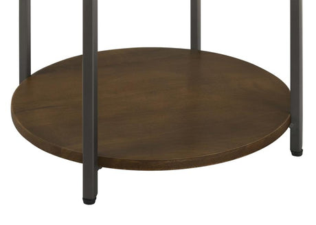 Noemie Round Accent Table With Marble Top White And Gunmetal