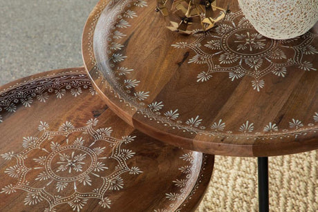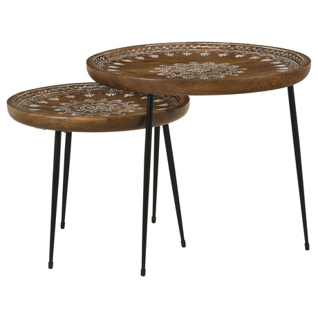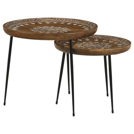 Nuala 2-Piece Round Nesting Table With Tripod Tapered Legs Honey And Black
