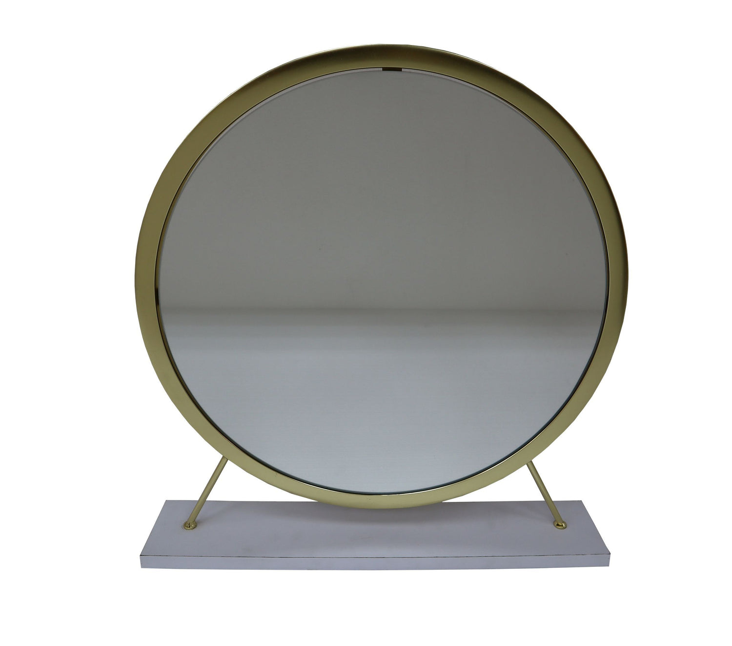 Adao Faux Fur, Mirror, White & Brass Finish Vanity Mirror
