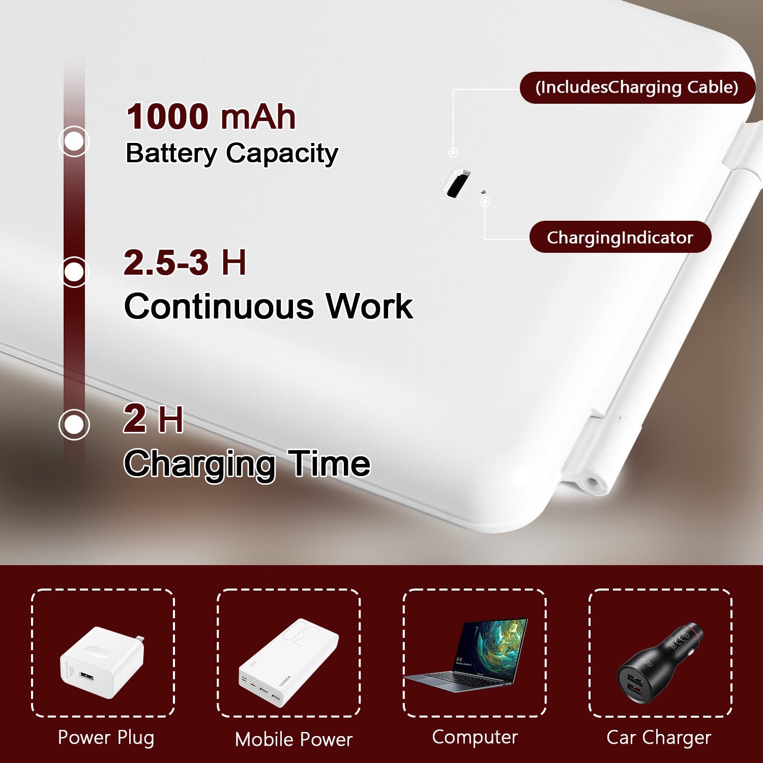 This 7.9" travel mirror embodies portable elegance. With a travel-friendly design, it features smart touch control for 3 light colors and adjustable brightness. The USB-rechargeable battery ensures lasting functionality, while the protective flip cover adds practicality. Perfect for on-the-go or home use, it seamlessly merges convenience with refined style for effortless beauty routines.