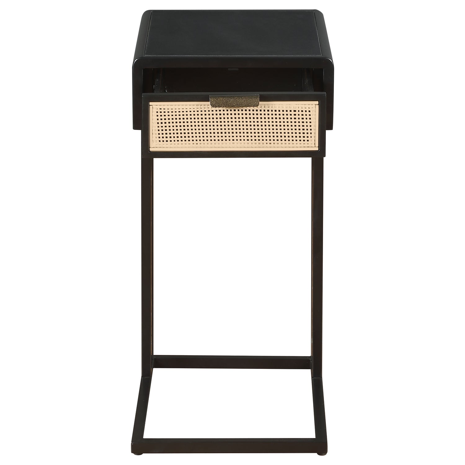 - Item Name: Amherst Black 1-Drawer Radio Weave Cane Metal Side Table