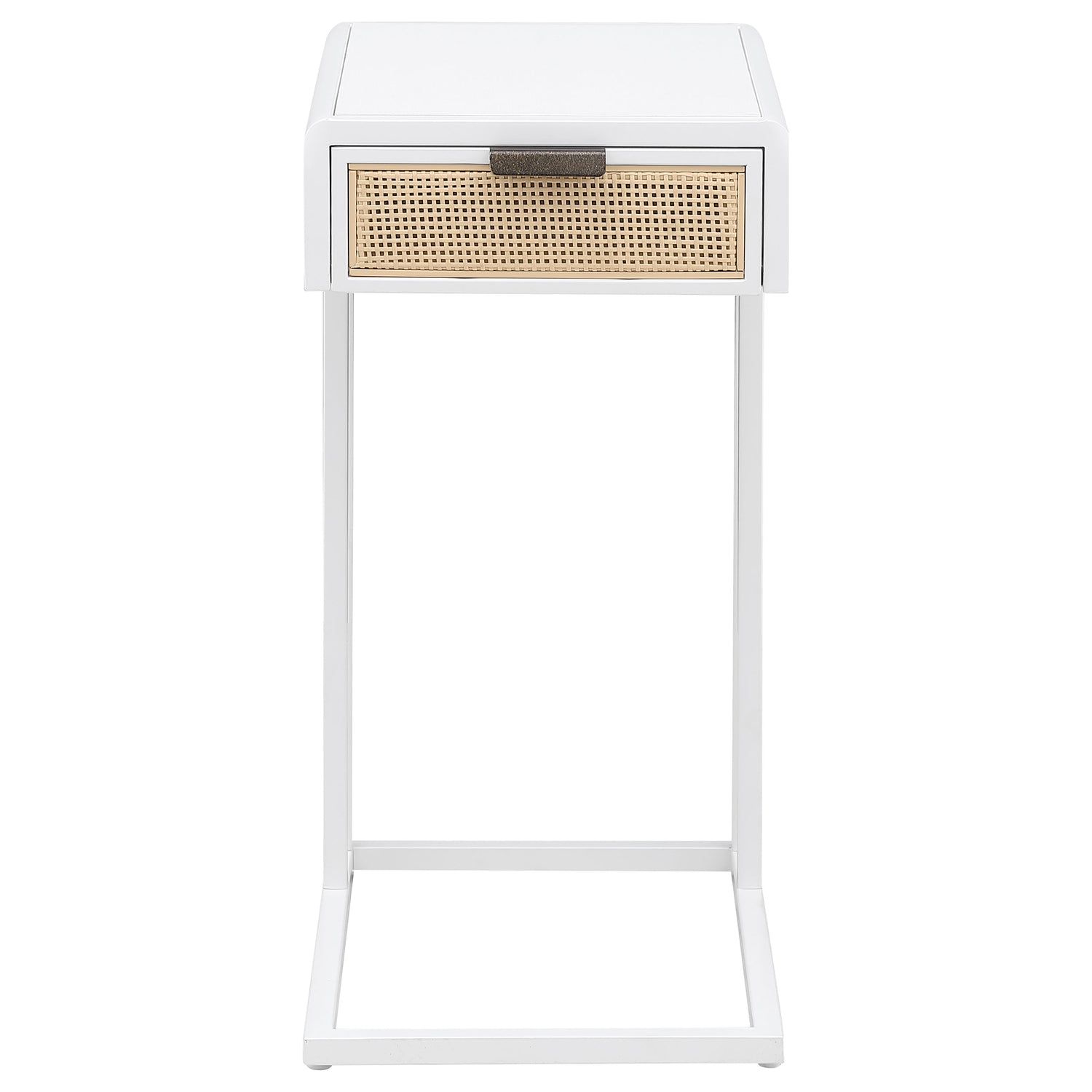 Amherst White 1-Drawer Radio Weave Cane Metal Side Table