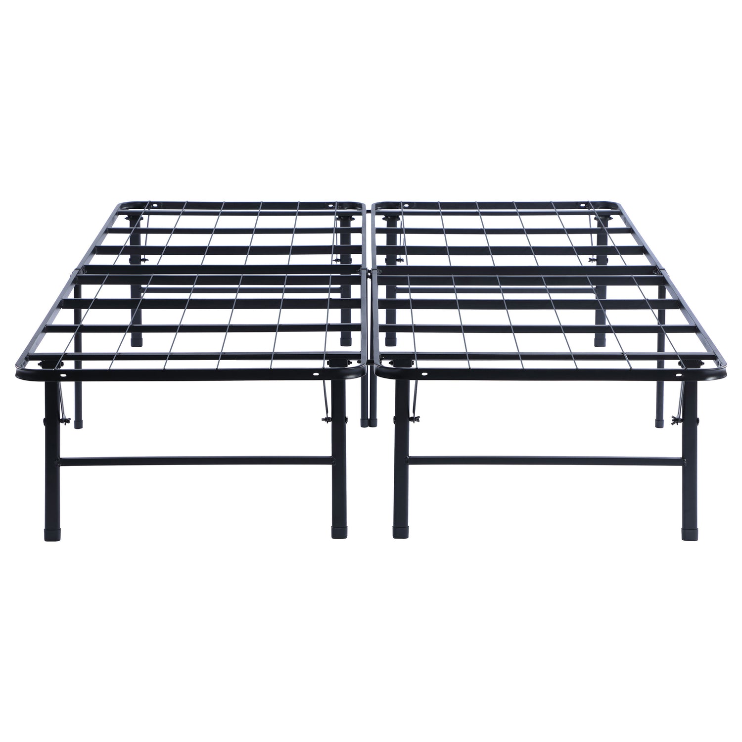 This simple transitional platform bed frame is both supportive and minimal. Easily storable and capable of folding, it can be pulled out when company visits. Its heavy gauge steel construction offers extra support, and has a black powder coated finish to protect against nicks while looking sleek and stylish. This bedframe can also be used as a standalone bed or to support a mattress to replace a box spring foundation. Included in this style are a variety of sizes to suit every mattress size.