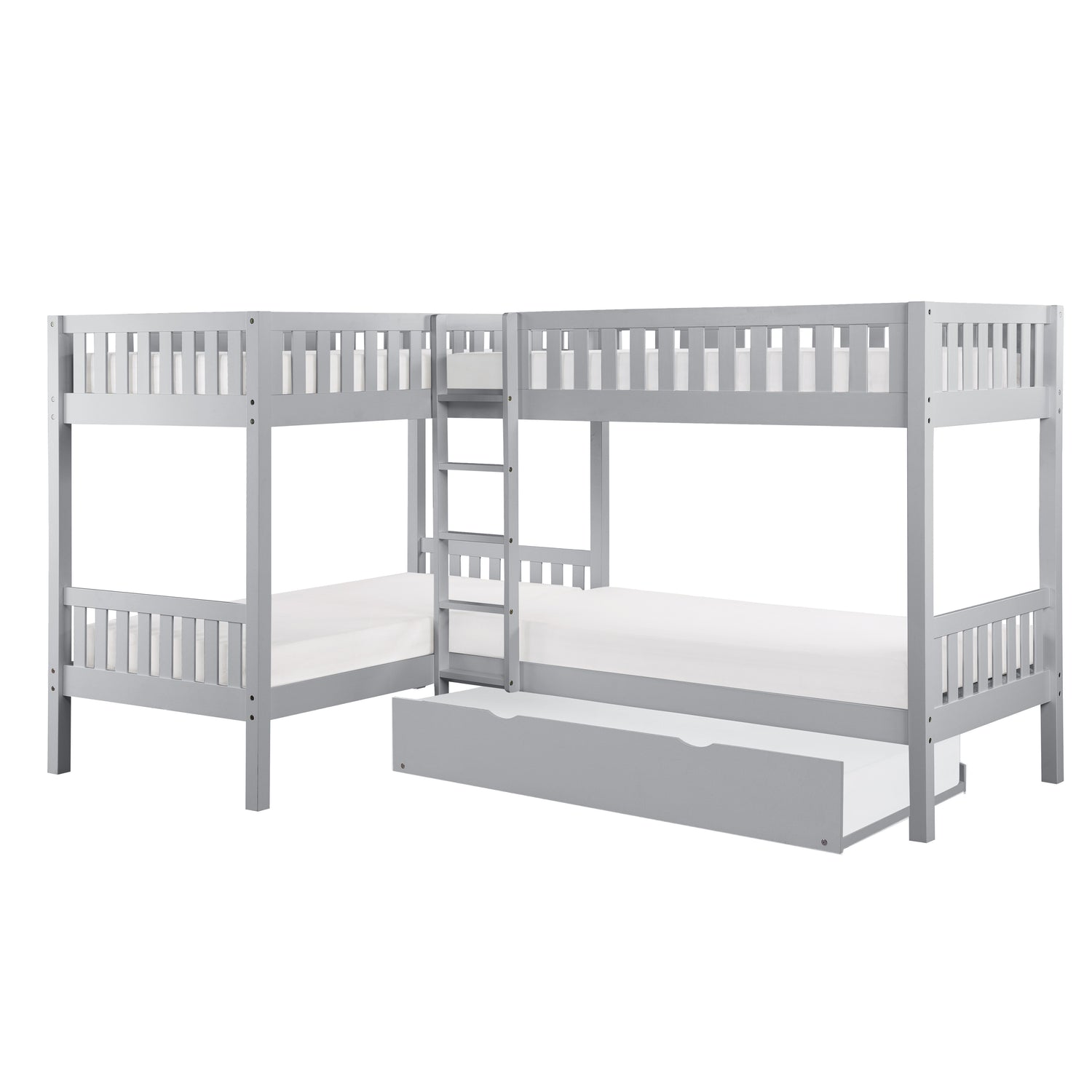 Orion Gray Corner Bunk Bed With Twin Trundle