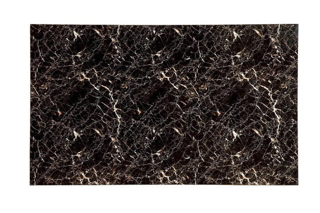 Tall sleek structure accented with a glossy faux marble table top that perfectly shows off the intricate marble tones. This table Is available in two sizes and perfectly complimented with tall arched padded chairs.