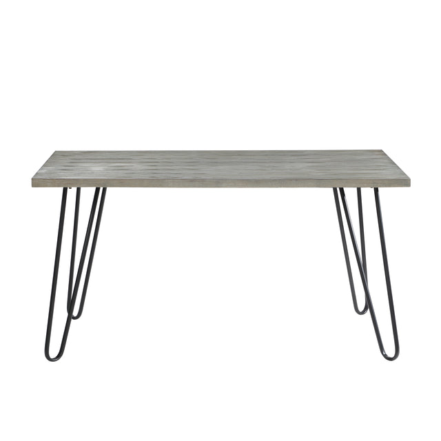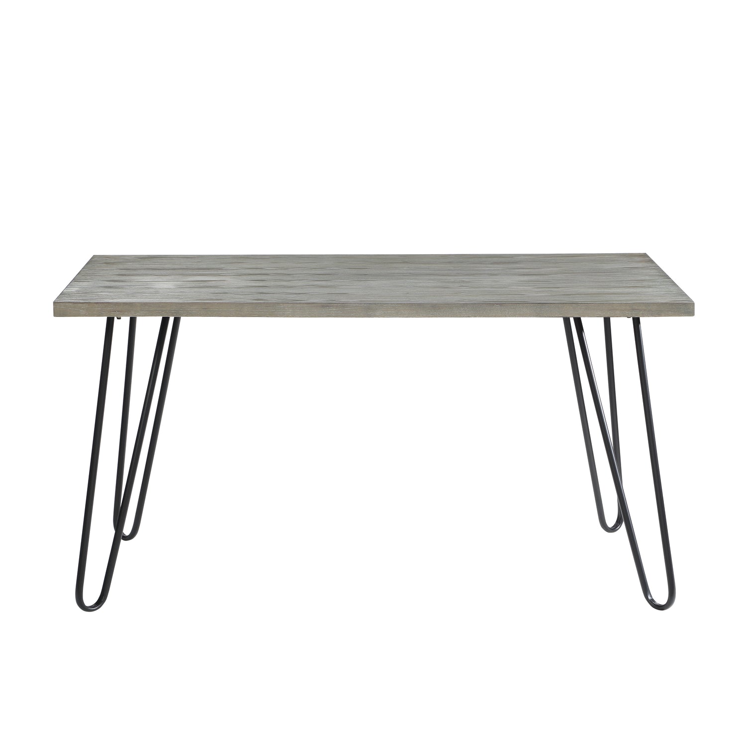 From its streamlined profile to the vibrant hues that contrast the table’s neutral finish, the modern design of the Keene Collection will blend perfectly with your dining room’s sleek aesthetic. A gray finish over oak veneer subtly highlights the distinct grain of the wood, while black-finished hairpin legs support the table’s fixed top.