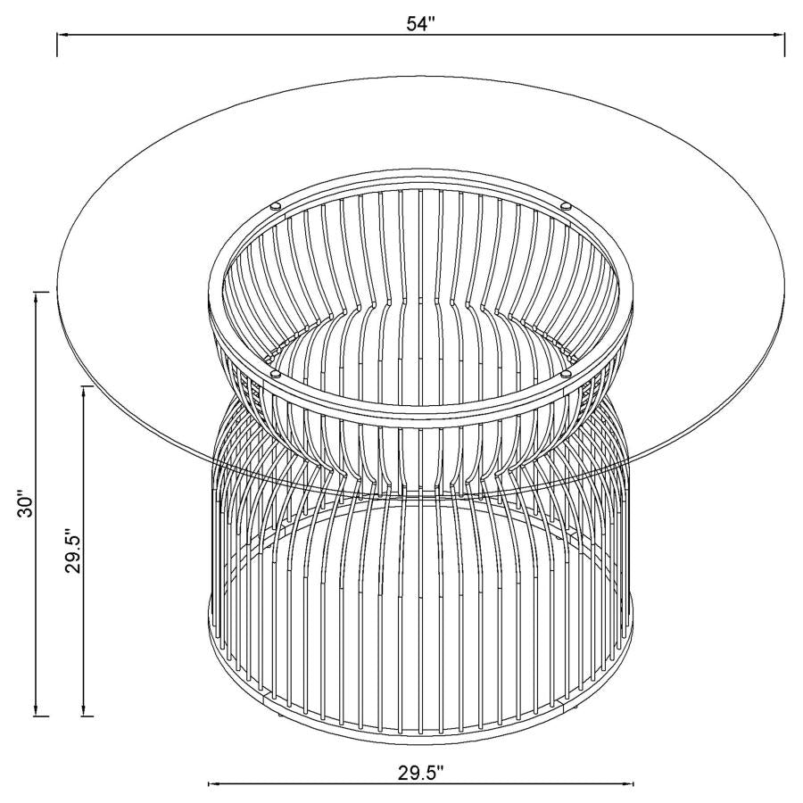 Versatile and stylish, this sculptural-like table base features a stunning cage-style design. Round in shape with sleek, thin metal rods all around, it has a pinched top section that lends a softly curved edges and a supportive open base that sits flush to the floor. Made entirely of metal, this contemporary table base offers a dark gunmetal finish that can blend easily with existing colors and decor. Clear tempered glass top offers a sleek and easy-to-clean solution that perfectly complements the base.