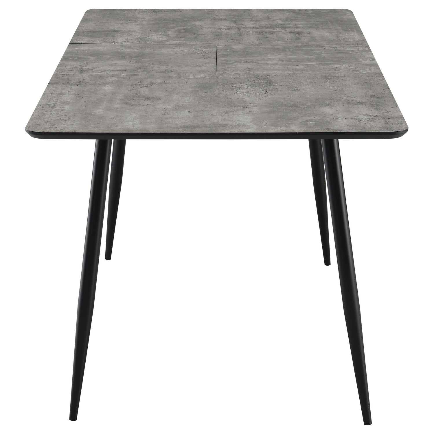 Description: This modern dining table features a sleek grey tabletop finish paired with black tapered legs, creating a sophisticated two-tone design. The table includes a 15. 75-inch butterfly leaf, extending its length from 47. 25 to 63 inches, perfect for accommodating guests or everyday meals. Crafted with HD melamine paper over MDF, the tabletop is scratch- and water-resistant for lasting durability. Supported by black powder-coated metal legs, this table combines contemporary style with functional versatility.