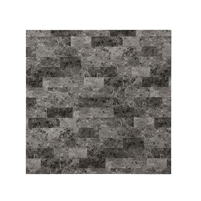 This counter-height dining set from the Wildrose Collection will add elegance and charm to any dining room. The durable two-tone table includes thick block legs and a replicated marble top that will add style to home for years to come. The included chairs are padded and upholstered with a black leatherette, exuding both comfort and style. Hold your next dinner party around this stunning set.