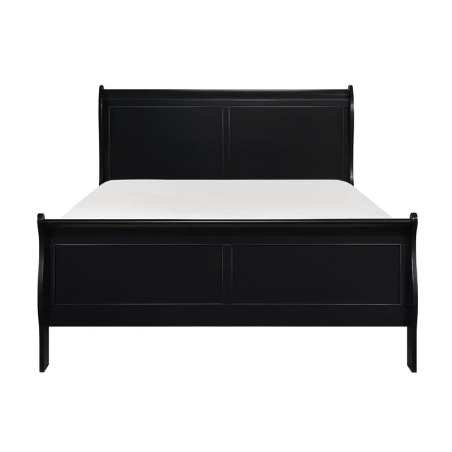 Traditional in design and modest in scale, the elegant Mayville Collection takes its design inspiration from the classic Louis Philippe styling. The black finish lends timeless appeal to the traditional queen sleigh bed.