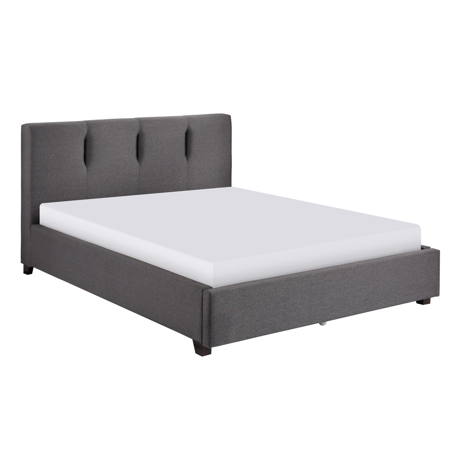 Your bedroom will have an aesthetically pleasing and practically useful center point thanks to the aitana collection's streamlined design. the upholstered bed's appearance is defined by its low profile and graphite-hued linen-like fabric for a neutral complement to your bedroom's modern decor. the bed's styling lends itself to placement in modern locations. the low-profile footboard and rails provide support for the platform system that is seen on the california king bed.