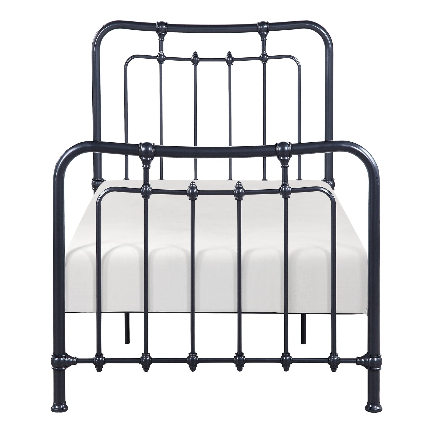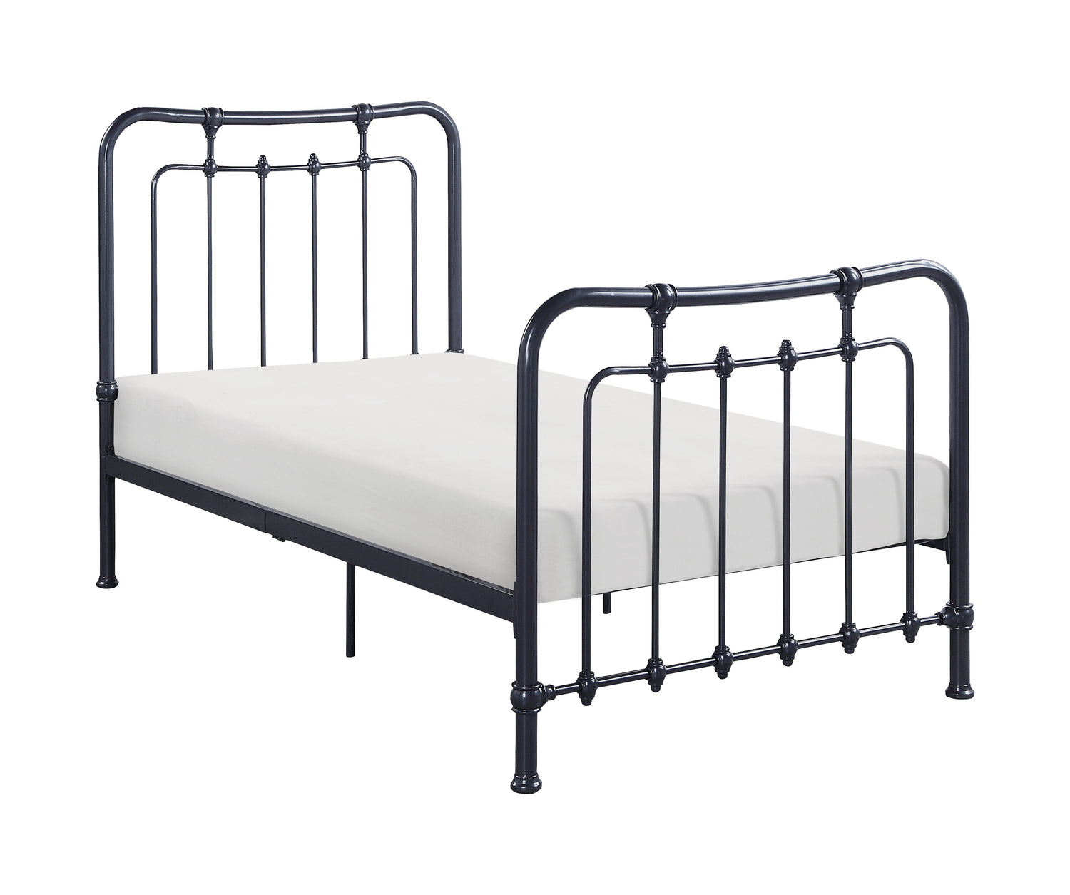 The engleside collection achieves its classic appearance by combining a timeless aesthetic of graceful lines and vintage style. the bed's metal frame has a gunmetal finish, which acts as a neutral palette for your personal preferences in terms of decoration. the junction of curved and straight lines that make up the framing of the twin-size platform bed is given visual contrast by the use of traditional jointing.