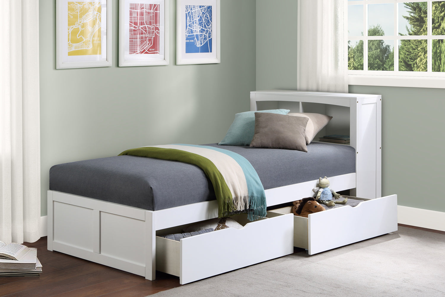 The chic galen collection will help you make the most of the space you have for sleeping. this transitional twin bed has been given a white finish, which makes it an excellent option for use in a variety of different types of settings for youth bedrooms. the bookcase that serves as a headboard provides space for storage that is within easy reach. your storage problems can be solved by constructing an under-bed solution using the twin toybox units that are currently available.