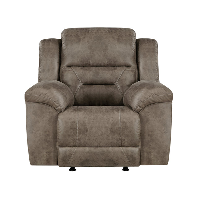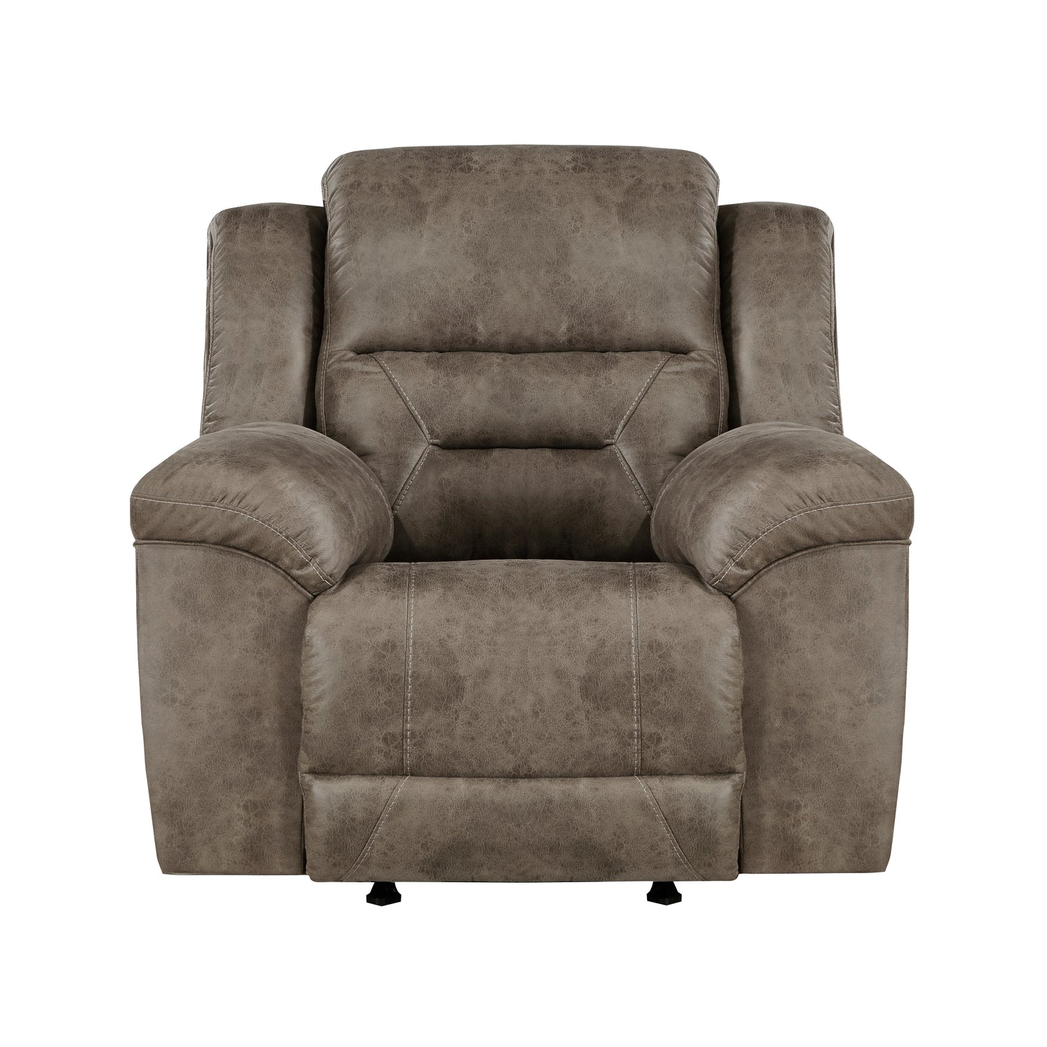 Your home's living room will benefit from the adaptable style and utilitarian design of the hazen collection, which will make for an attractive addition. your relaxation can be enhanced by the rocking motion of the chair that reclines for you, which also provides additional comfort. by simply pulling on the tab that is attached to the side of the chair, the mechanism that allows you to recline from a seated to a prone position can be activated. the velvety pillow-top arms and contoured seating have been upholstered in brown microfiber fabric that has been polished, providing a wonderful mix that is ready for leisure.