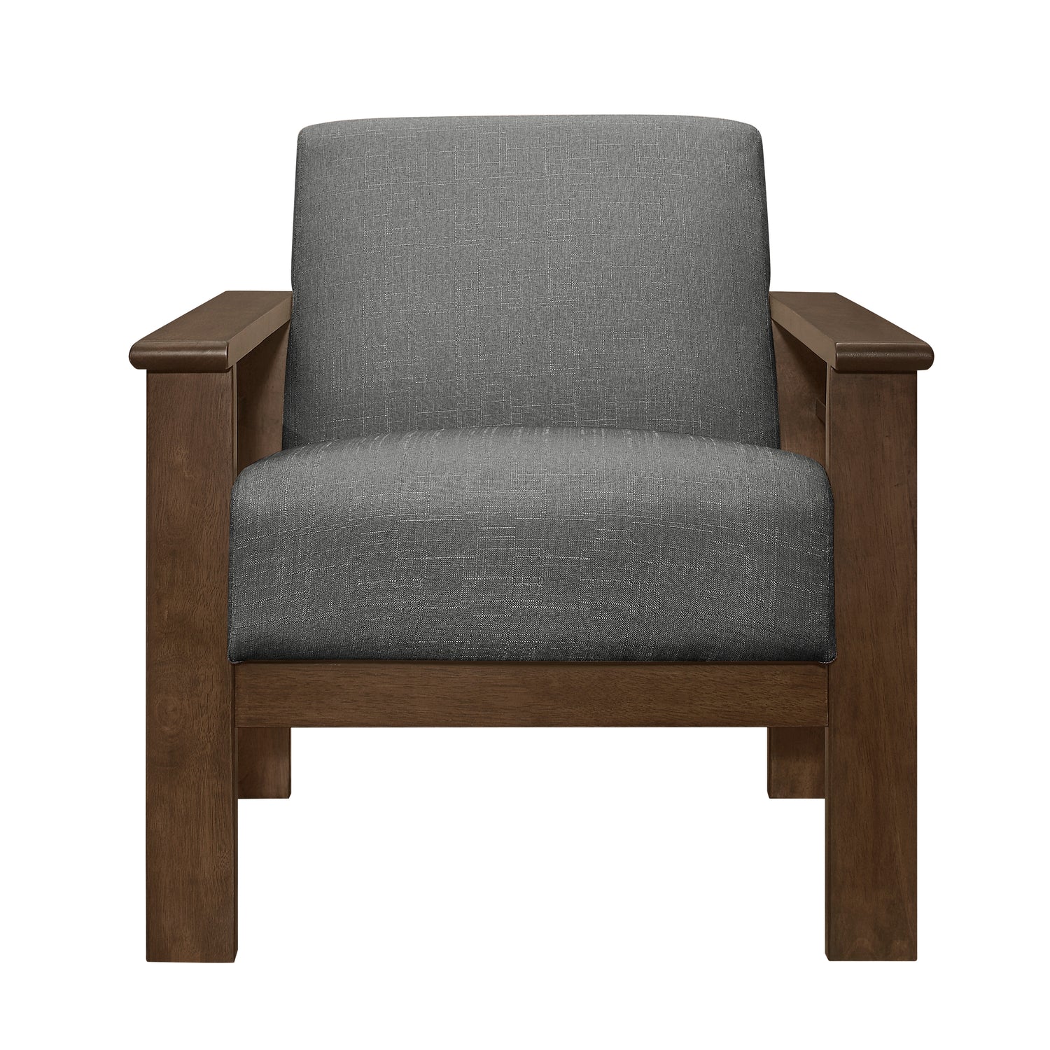 The helena collection is the perfect piece to use as an accent in the more transitional circumstances of your house. the chair is constructed out of solid wood and includes a walnut finish, vertical slat accents on the arms, as well as a clever and accessible storage compartment positioned between the seat and arm profile. the chair's design is inspired by the arts and crafts movement of the early 20th century. upholstery fabric with a textured pattern in a gray color covers both the padded seat and the back of the chair.