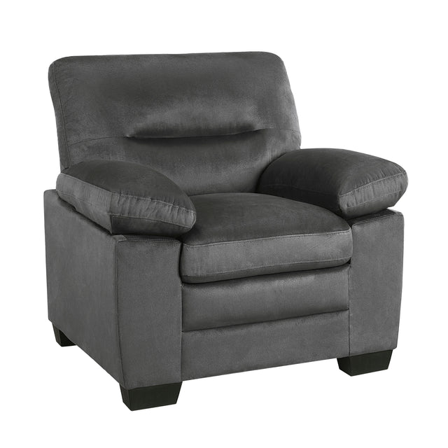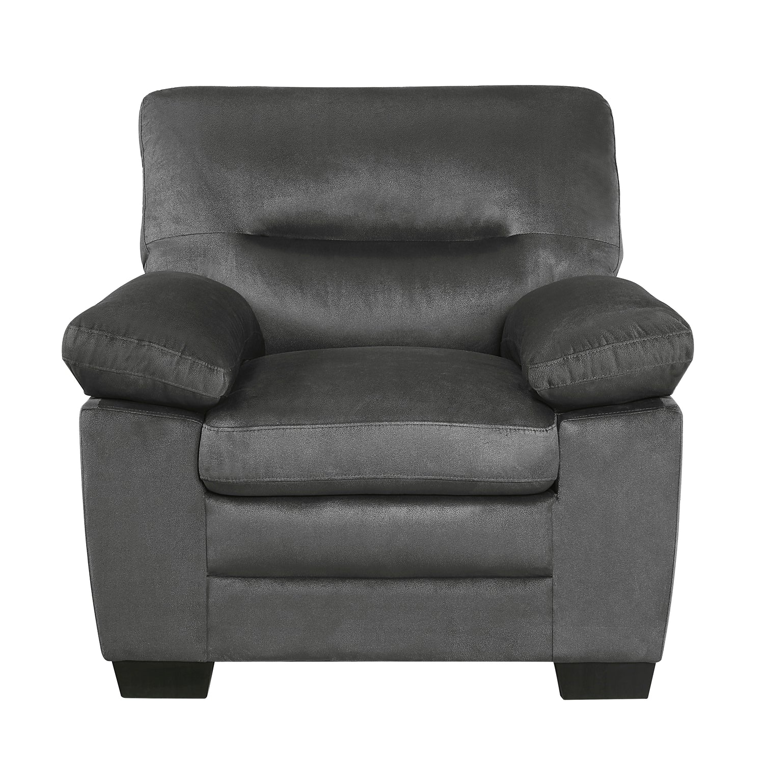 The keighly collection will provide your contemporary living space with the ideal finishing touch thanks to its streamlined appearance. while the pillow-top arms and soft seats make a platform that is ideal for your comfortable seated relaxation, the chair's cover is made of a fabric that is a dark gray color, giving it the maximum decorative variety possible.