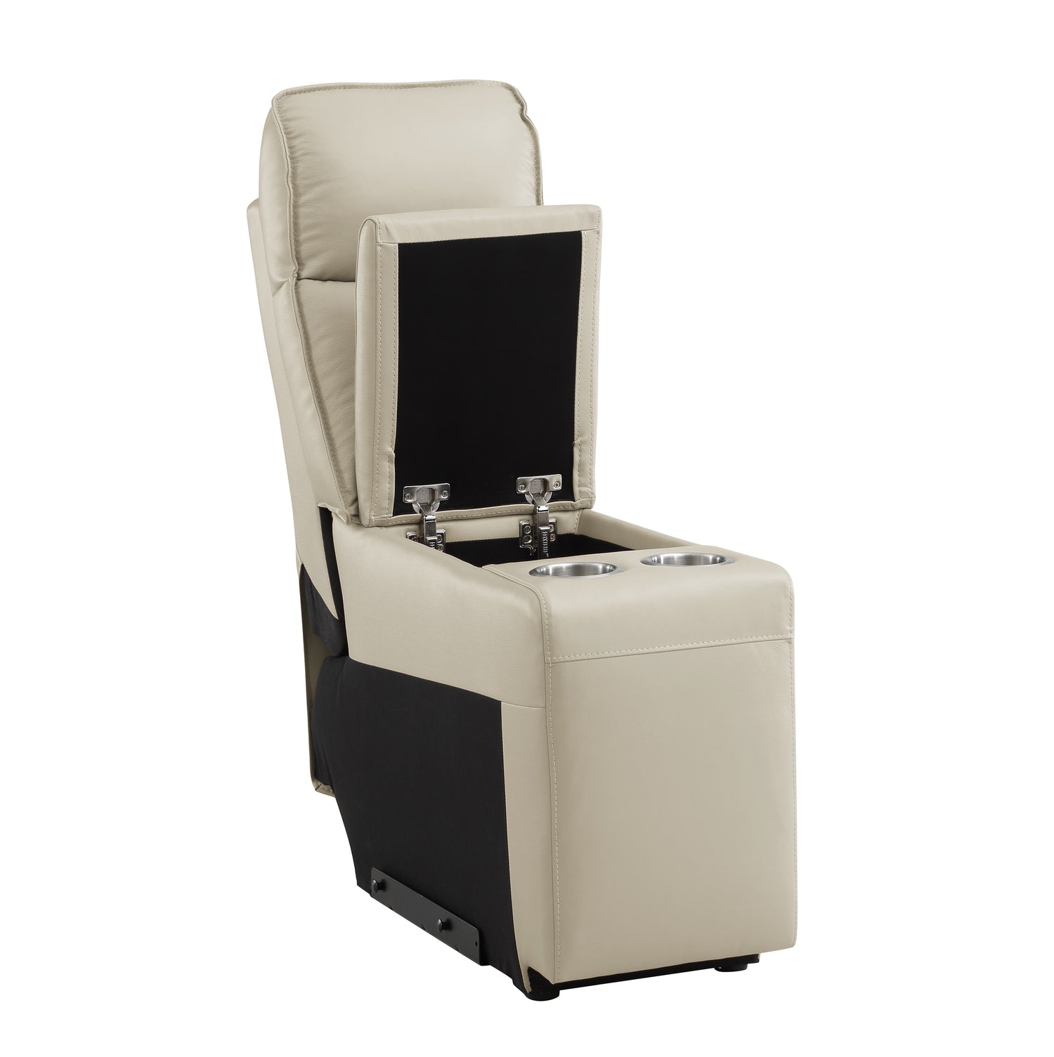 The maroni collection offers sufficient seats for you, your loved ones, and all of your friends. the traditional configuration of this sectional sofa includes an armless chair, a corner seat, and a console that has concealed storage as well as cupholders. on either end of this configuration are usb port upgraded end power recliners. the parts of the collection that come into contact with your body are upholstered in top-grain taupe leather, while the other parts are covered in imitation leather. simply press the button on the power recliner, and it will bring the chair into the position you want it to be in. the fact that the sectional features usb outlets and power-operated headrests, both of which allow you to further personalize your level of comfort, contributes to the sectional's overall functionality.