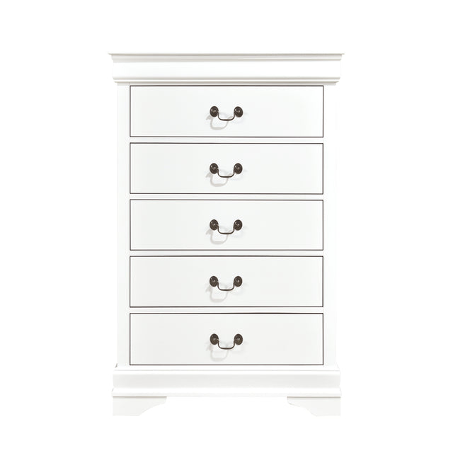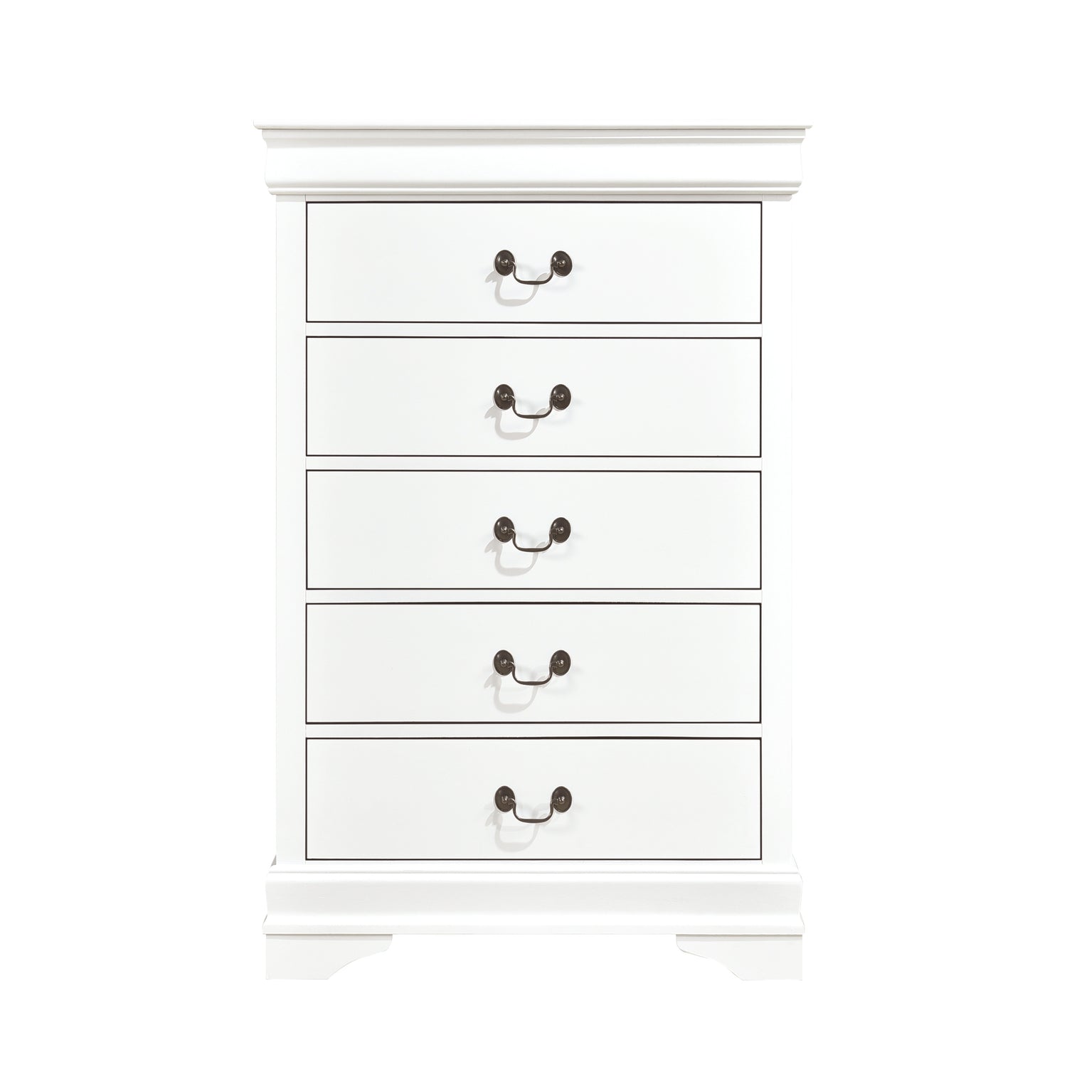 The beautiful mayville collection derives its design cues from the timeless louis philippe fashion, which results in a collection that is both classic and understated in its appearance. the chest features an okume veneer that is complemented by a white finish and is embellished with drop handles that have an antique bronze tone.
