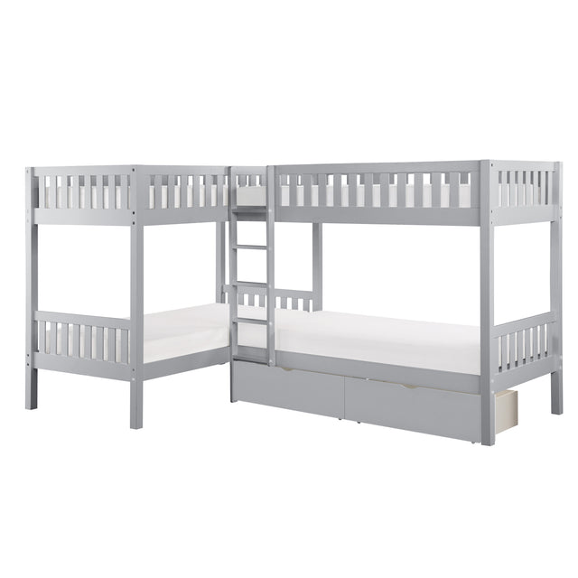 Orion Gray Corner Bunk Bed With Storage Boxes