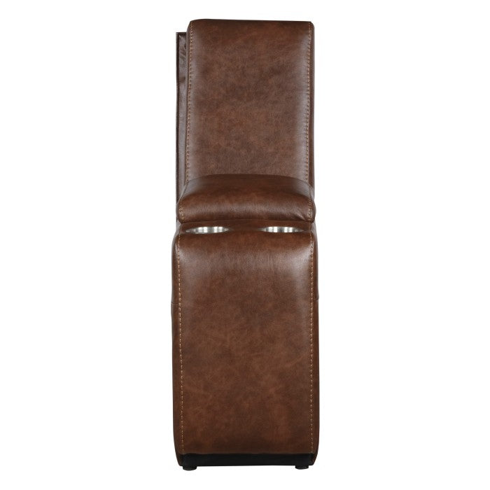 The putnam collection will provide you with a seating group that is not only elegant but also functional and comfy for your living area. the chaise on the left and the reclining chair on the right flank the center of the corner unit. both pieces of furniture have power reclining mechanisms and usb ports, making it possible to arrange them in the ideal location within your available space and to configure them to meet your specific requirements. cupholders and power outlets are included into the console of the vehicle. the motorized recline armless chair and the manual recline armless chair both contribute to the overall profile of the sofa by expanding its dimensions. the putnam collection is presented in a brown polished microfiber fabric with diamond pattern stitching and nailhead-adorned arms for a traditional appearance of ornamental elegance.