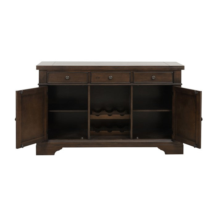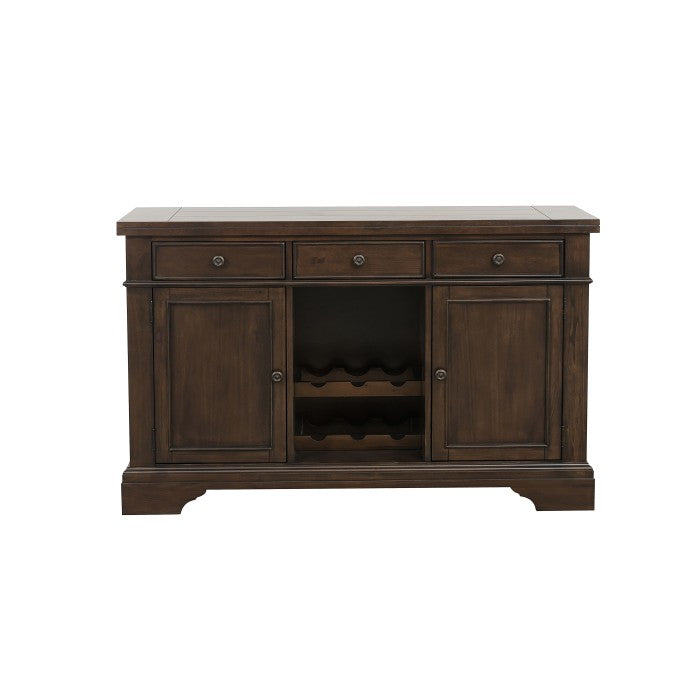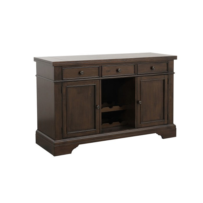 The reid collection provides an updated take on rural design that, when added to your dining area, will provide for an atmosphere that is both cozy and inviting. this look is ideal for traditional homes. the display area, drawer space, and storage space behind the doors and drawers of the buffet/server are plentiful thanks to the cherry finish that adorns the wood veneer.