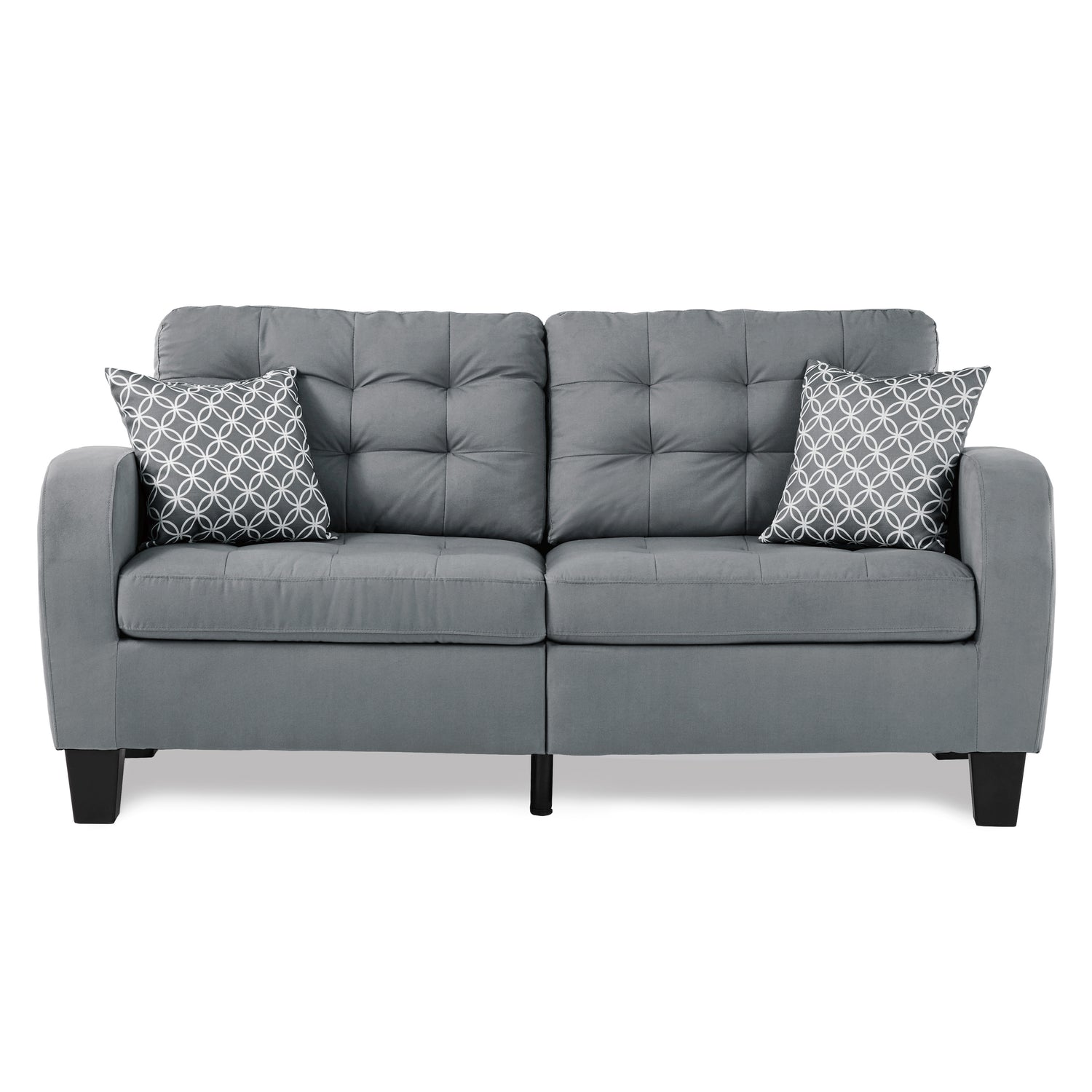 The sinclair collection gives your modern house a style that is both polished and traditional with just a touch of vintage flair thanks to its furniture. your living area can be rearranged to achieve the ideal look with the help of the sofa. fabric in a gray tone, with pillows in contrasting colors, which enhances the overall look and can be used in a variety of interior decorating schemes.