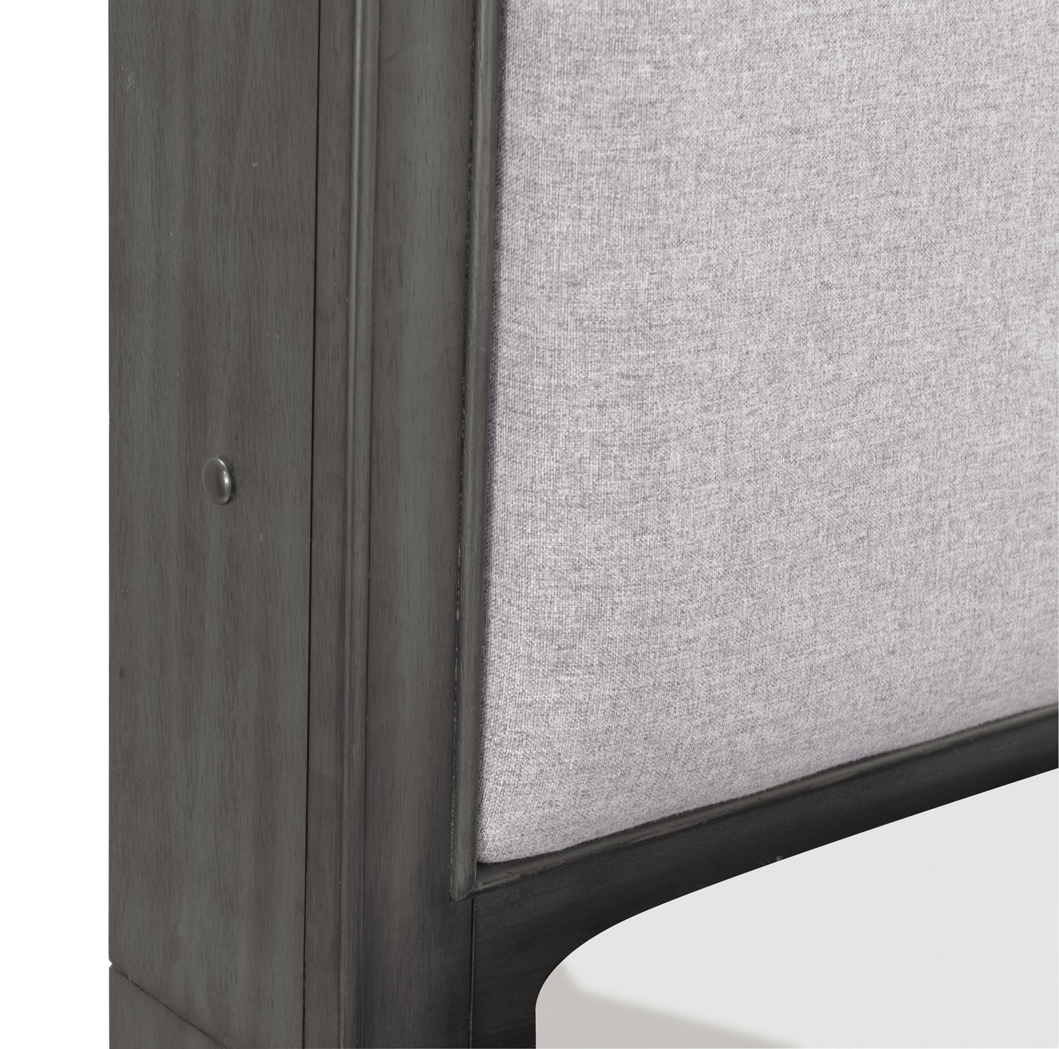 The wittenberry collection is known for its adaptable appearance, which is achieved by combining contemporary comfort with a style that is more transitional. the eastern king bed features a multi-functional design that allows for convenient storage within the footboard drawers, charging capacity by way of the mounted usb ports, as well as display and lighting within the touch-engaged led-lit open faced bookcases of the headboard. all of these features are made possible by the bed's design. the pebble gray hued cloth inserts that are featured in the headboard of the bed provide a complimentary contrast to the collection's gray finish that is applied over okume veneer. the knobs and bar hardware have a dark bronze finish and are located on the drawers of the footboard.