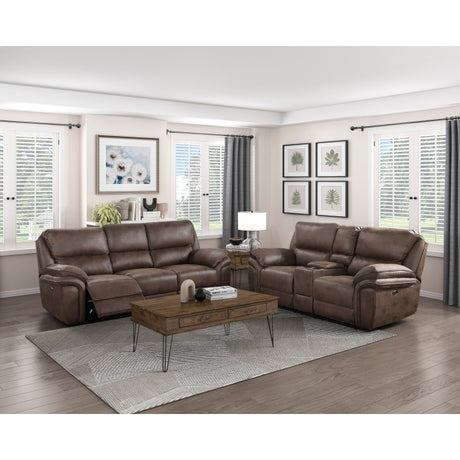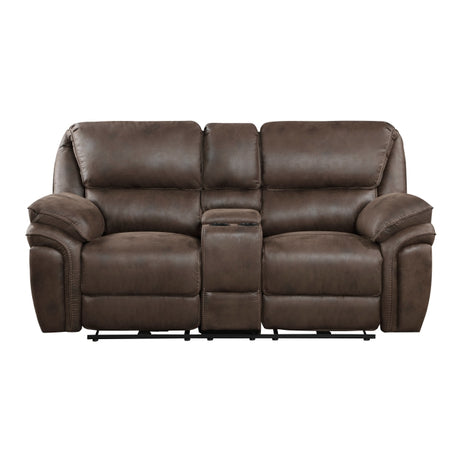 Proctor Brown Microfiber Power Double Reclining Love Seat with Center Console