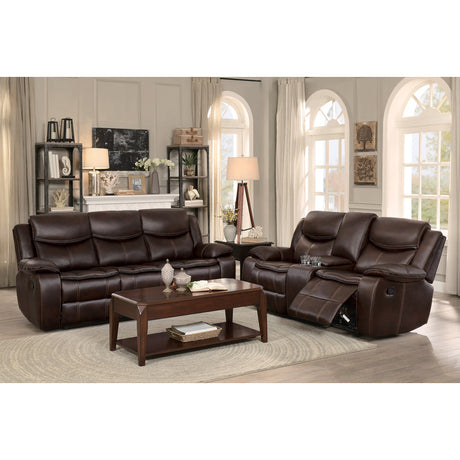 Bastrop Brown Fabric Double Glider Reclining Loveseat with Center Console