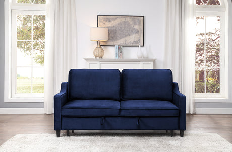 Adelia Navy Velvet Convertible Studio Sofa with Pull-out Bed