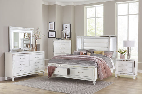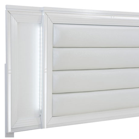 Tamsin White Metallic Eastern King Platform Bed With Led Lighting And Footboard Storage
