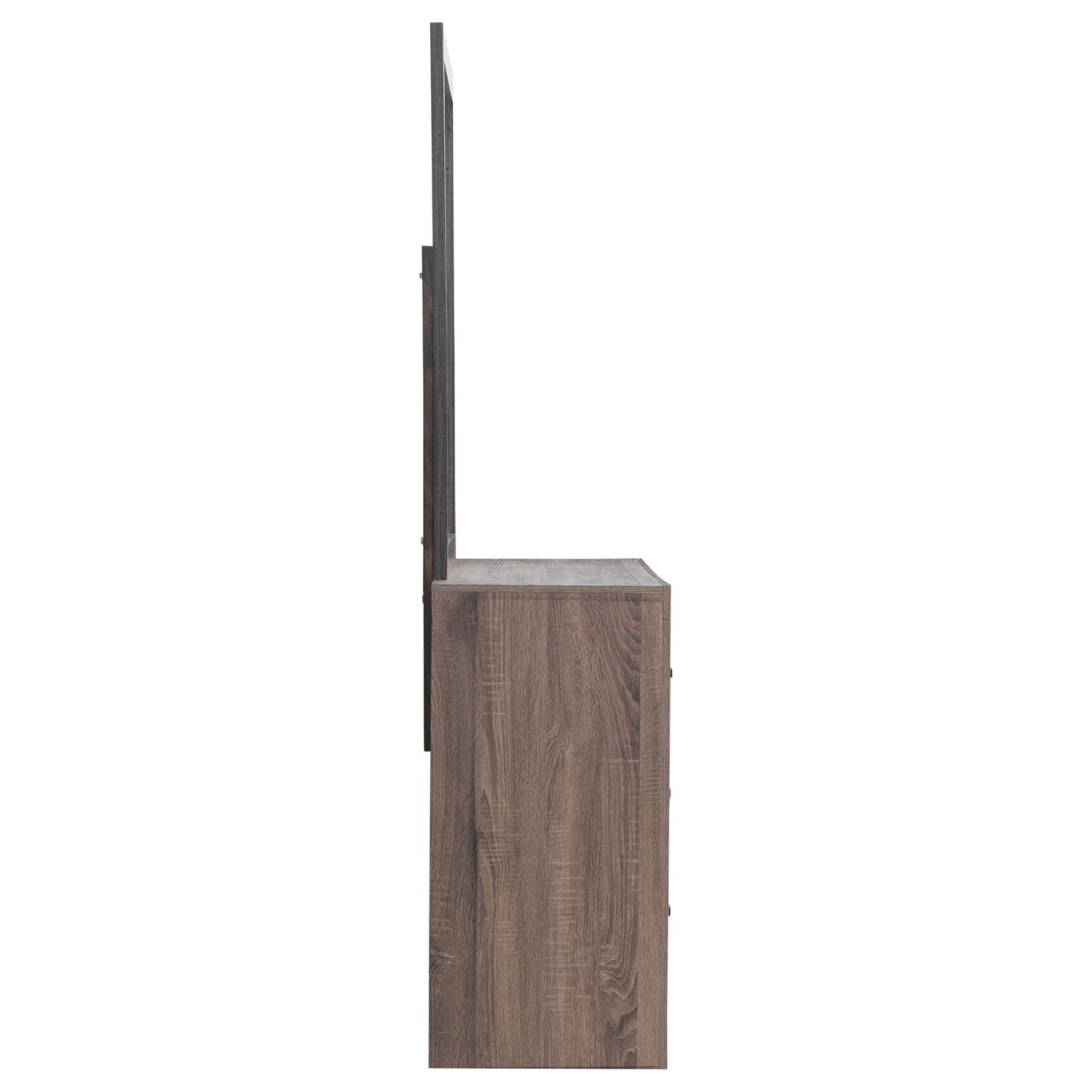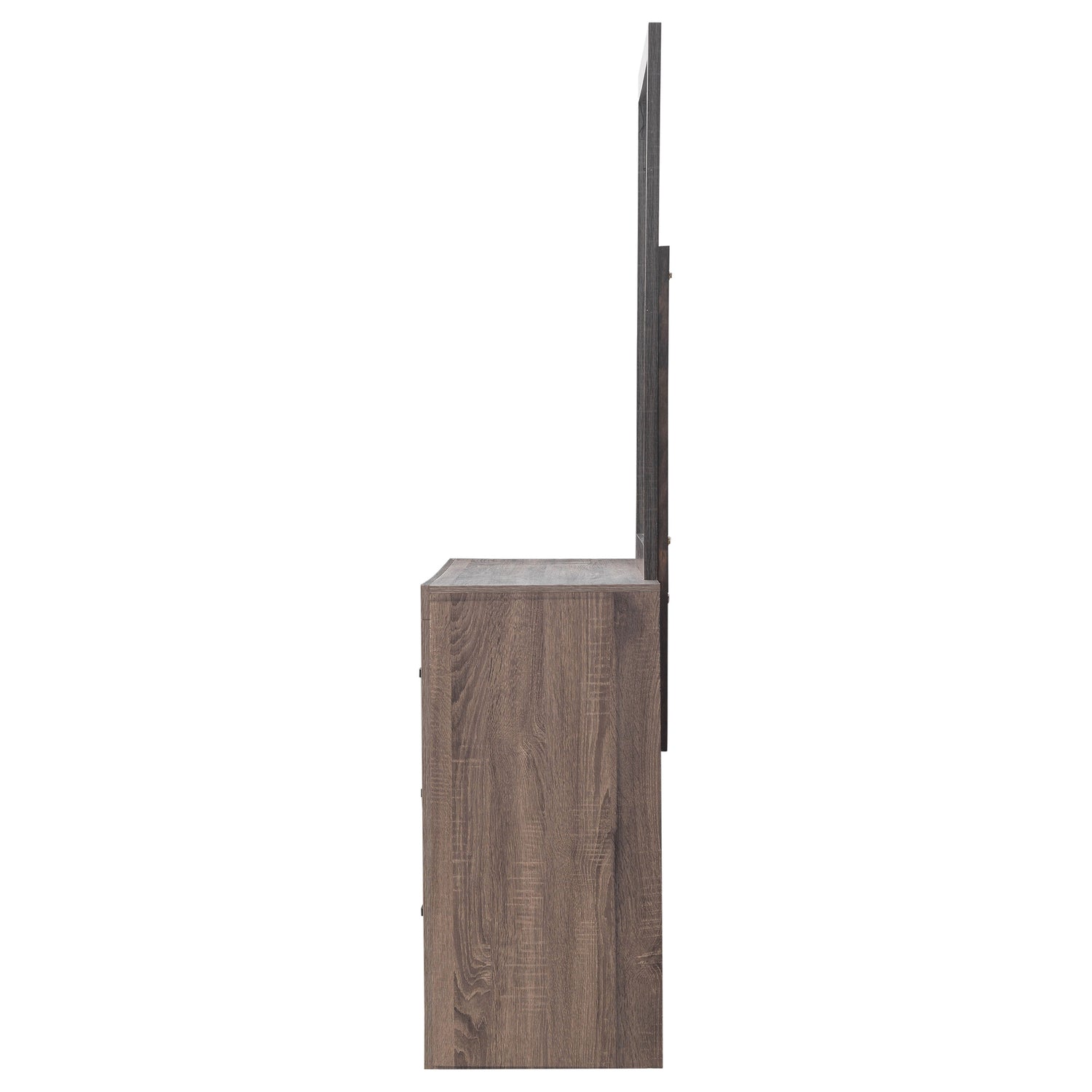 Enhance your bedroom with the bold and contemporary style of this wooden dresser. The modern design features 3D paper veneer for added quality and easy maintece, while dark bronze handles top each drawer, adding a classic touch. Deep storage drawers accommodate a variety of wardrobe essentials, making this piece as functional as it is stylish. Available in multiple finishes, this dresser easily adapts to any color palette. The large, rectangular mirror with a no-frills frame and quality 3D paper veneer enhances your space and is available in a range of attractive colors to suit your personal style.