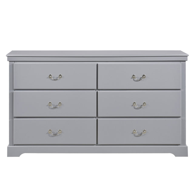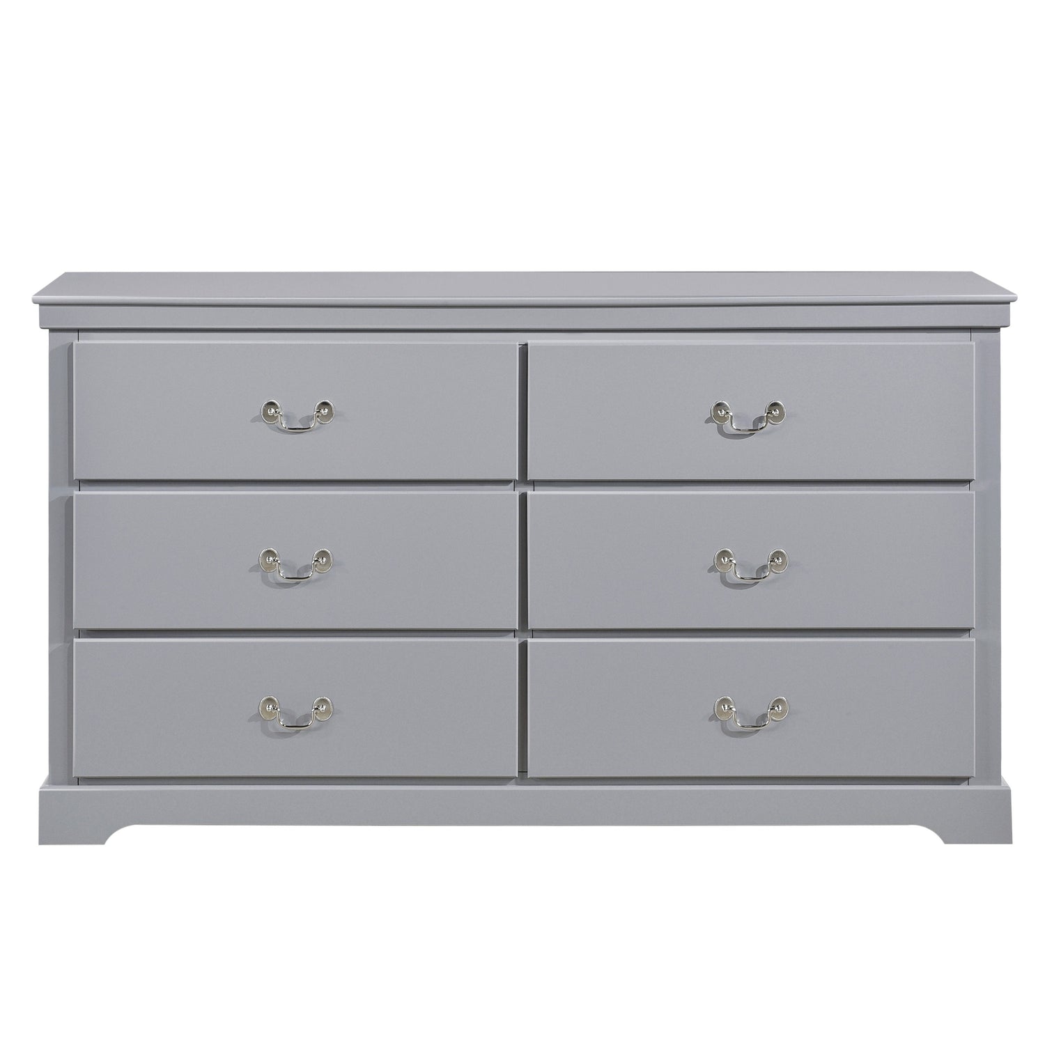 The seabright collection offers a one-of-a-kind foundation from which you may customize your bedroom thanks to its look, which is created by combining classic and transitional design elements. the painted finish in a gray color offers a great deal of variety in placement as well as opportunities for decorative inspiration. the dresser's conventional appearance is complemented by the classic styling of the satin nickel bale and pull hardware. this contributes to the dresser's classic profile.