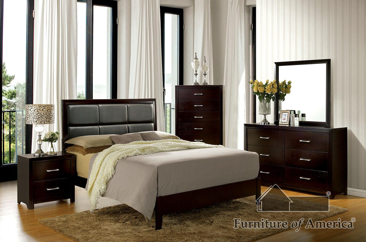 Generous storage and silver hardware accents are the standout features of this contemporary dresser.