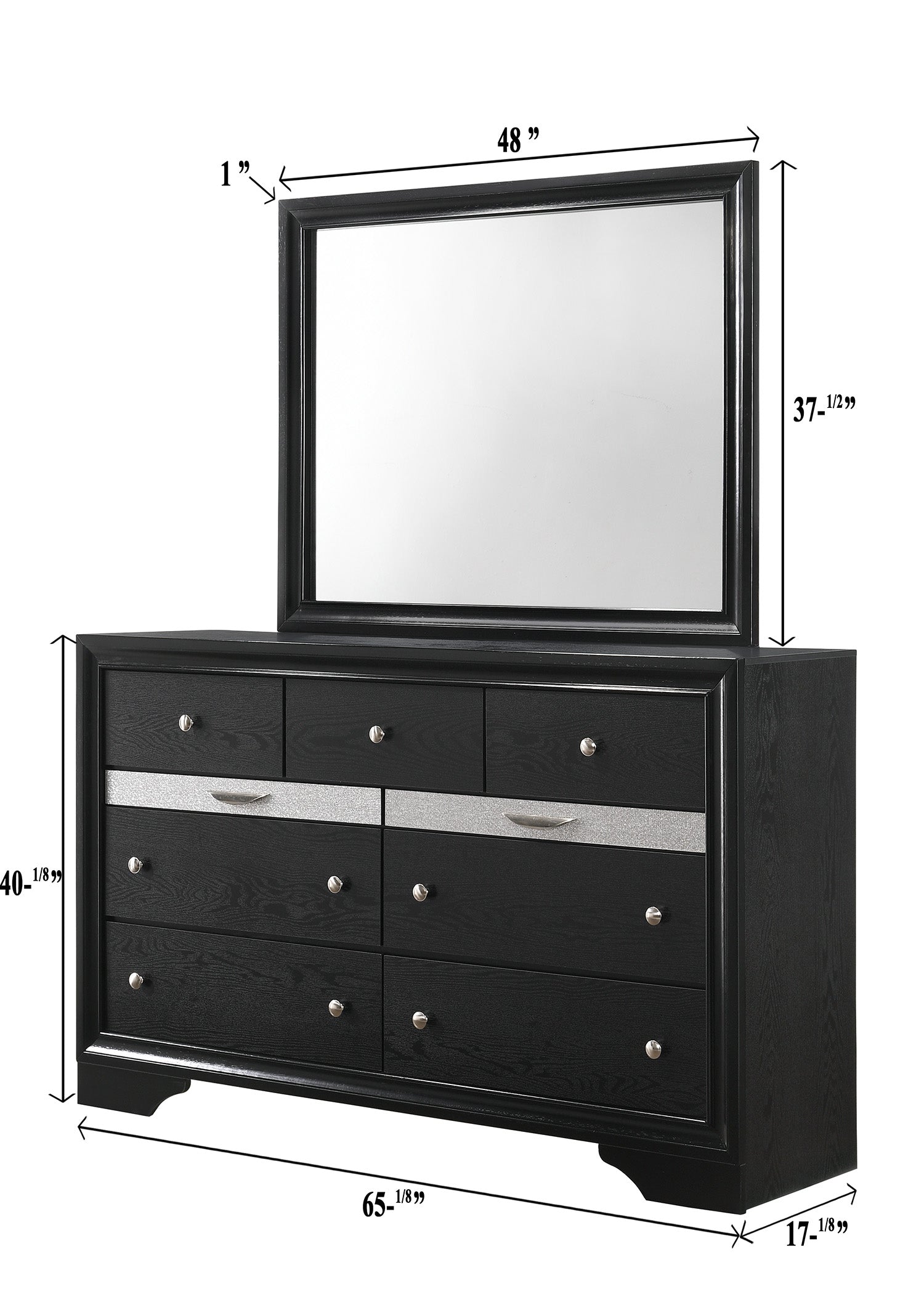 The Regata Black/Silver Dresser is a stylish and functional piece, featuring a sleek black and silver finish with ample storage space and a jewelry tray.