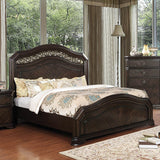 This stately bed set features a classic rich espresso finish, ornate metal scrollwork along the mirrored headboard trim and carved wooden details. The deep wooden grain patterns on the headboard and footboard exudes elegance. The case goods have clipped corner and strong trim lines, grounded them in sophisticate appeal. Transform your master bedroom into a luxurious suite.