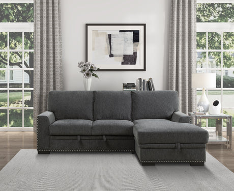 Morelia Exposed Feet With Faux Wood 2-Piece Sectional Pull-Out Bed And Right Chaise Hidden Storage