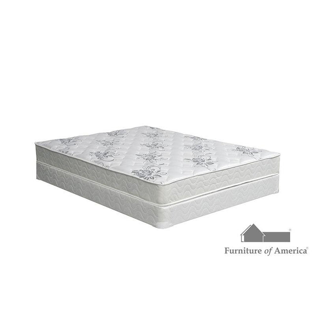 8" tight top mattress,White Fabric With Grey Flowers. Multi Needle 5 Layer Quilting 0.5 oz. Fire Guard Barrier. Available in Twin, Full, Queen, Cal.King and E.King sizes.