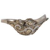 This beautiful ornament is made up of a bowl and spheres all finished in champagne silver and adorned with vining crackled glass.
