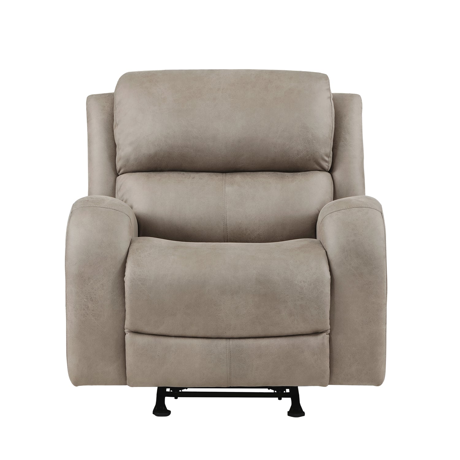 Transitional style is exemplified in the Pagosa Collection, its design pairing plush contoured seating, and versatility of style to create a relaxing space within your home’s living room. The plush contoured profile of the collection is covered in brown polished microfiber. With a pull of the side mounted tab the reclining mechanism is engaged easing the chair into the prone position. The chair features additional function by way of its rocking mechanism.