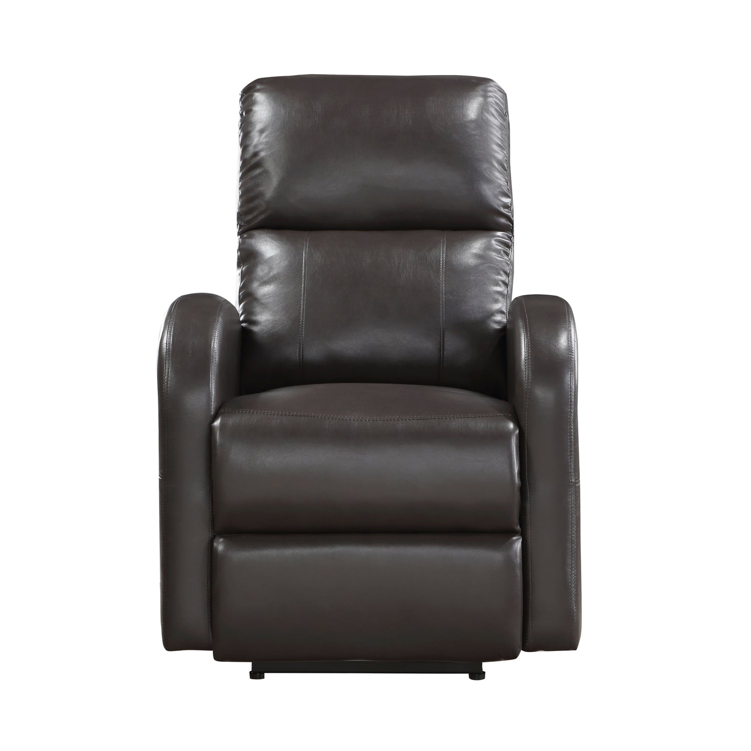 The wiley collection will give your room a more contemporary look and feel, regardless of whether it is used as an accessory to your already existing living room suite or as a stand-alone chair in your home. simply pressing a button on the power motion reclining mechanism will put you in a position where you may kick your feet up and rest. in this modern selection, which features clean lines, the covering is made of brown imitation leather.