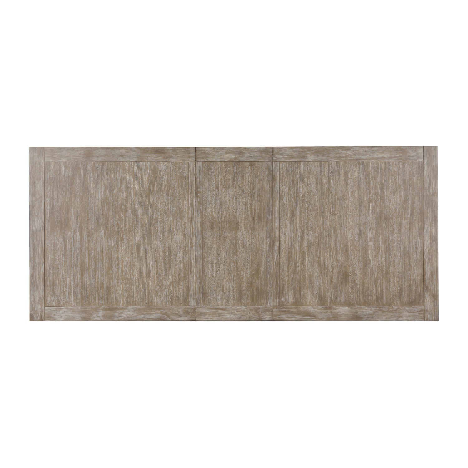 An elegant blend of traditional styling and rustic aesthetic combines to create the look of the Southlake Collection. The rectangular tabletop is supported by a double pedestal base, it’s urn profile lending distinct accent to your dining room. The wire-brushed brownish-gray finish highlights the oak veneer. The collection features solid wood construction.