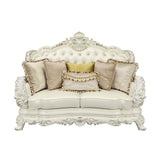 Adara Pearl White Synthetic Leather & Antique White Finish Loveseat