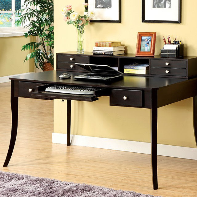 This console table is perfect for a hallway or office. Finished in dark espresso, it has stylish flared legs, drawers for storage and a hidden pullout keyboard tray.