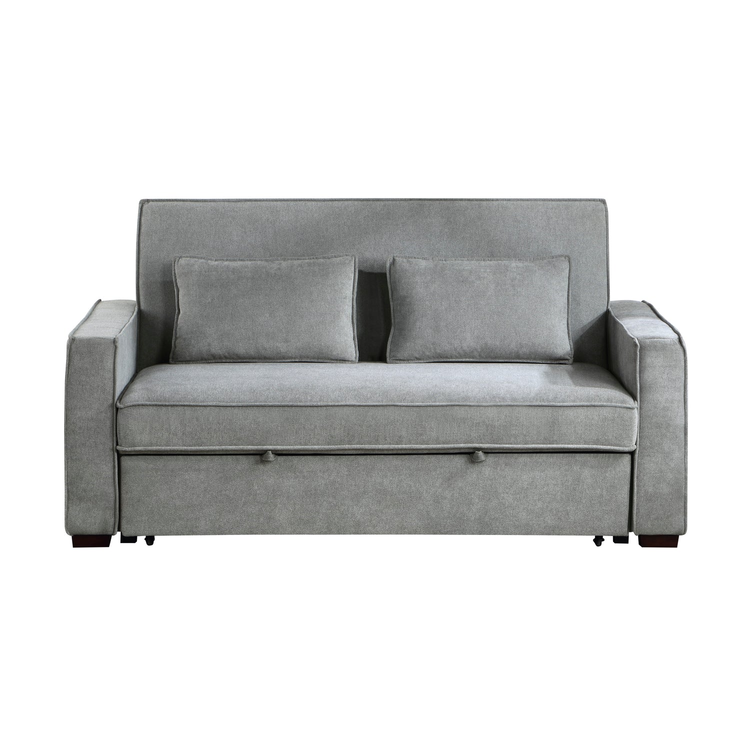 The alta collection's seating can be easily converted into a bed using a few simple motions, turning this sofa into a versatile piece that can be used in a variety of ways to enhance the appearance of your house. the click-clack mechanism on the back of the sofa lowers it, and a fast pull on the front-mounted tabs reveals the pull-out bed, bringing it to the same level as the seat to make an ideal sleeping platform. the contemporary shape and track arms of the couch are denoted by the noticeable welting, and the gray textured fabric upholstery offers a neutral palette against which your individual tastes in terms of decoration can be displayed.